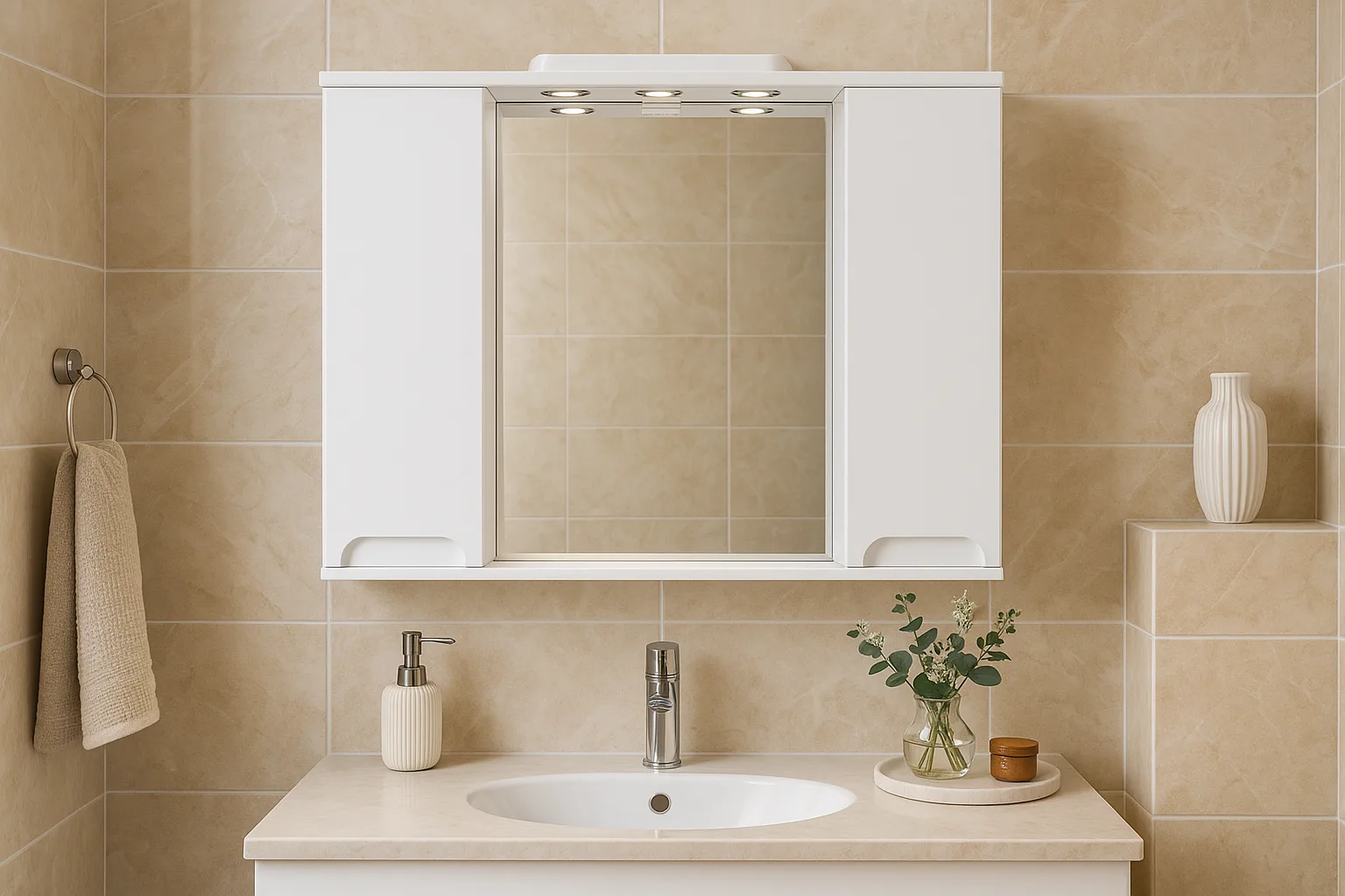 Restrained functionality of Kornelia furniture! Metallic shades and clear shapes of mirrors and vanity units create a perfect atmosphere of bright light. Experience daily comfort in your bathroom.