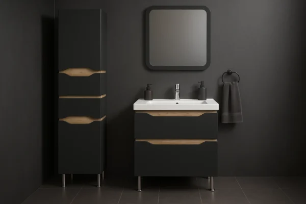 Відкрийте для себе колекцію "Сакраменто", де сучасний дизайн поєднується з унікальними деталями, що надають характеру вашій ванній кімнаті. Чіткі лінії меблів доповнені стильними контрастними акцентами, створюючи вишуканий та запам'ятовуючий вигляд.