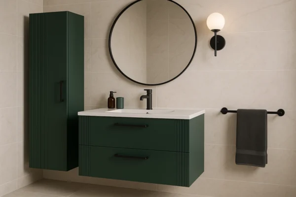 Магія смарагду та сучасна елегантність. Глибокий колір у поєднанні з чистими лініями створює атмосферу вишуканого спокою, наповнюючи вашу ванну кімнату гармонією та особливим шармом.